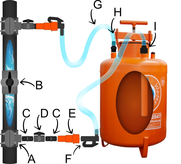 | G | 1m Pipe * (clear tubing used for illustration purposes only, high pressure pipe required) |